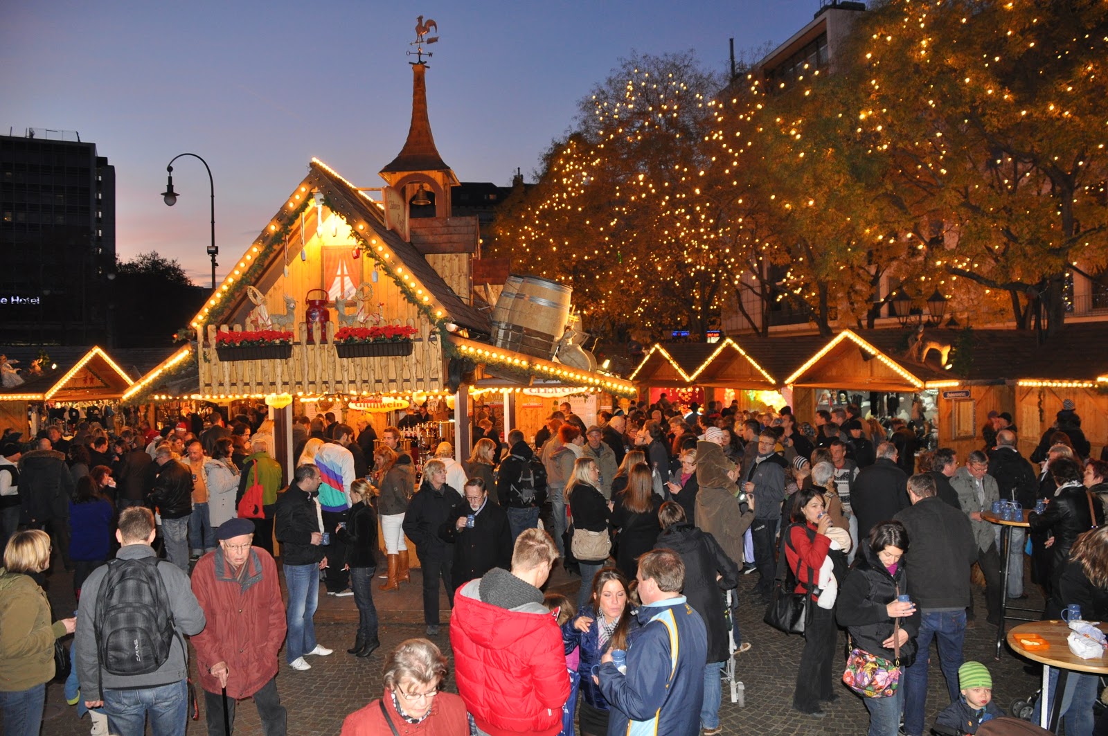 Before coming back to the states on December 1st we spent the weekend in Cologne, Germany. Everyone had raved about the Christmas Markets in Europe. We should have known better than to go on a weekend but it was the first weekend it opened so I was hopeful it would not be too busy. WRONG. With 2 kids and a strolller the market was hard to manuever that first evening. Wall to wall people, at one point we felt like salmon swimming up stream. Despite the crowds we enjoyed the food, gluwhein (sp) and ice skating. Well Aidan did not enjoy ice skating, but Jax liked being pushed on the ice.